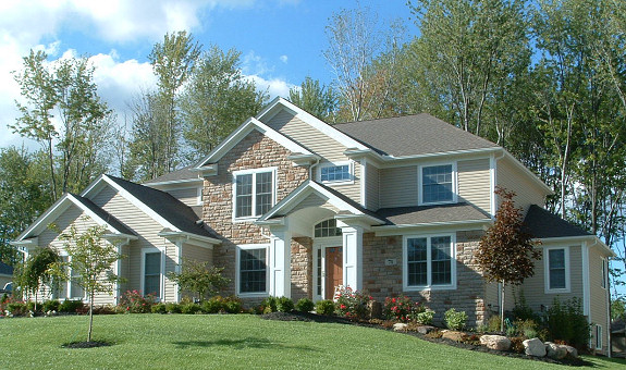 | 1st floor master suite with large vaulted master bath. 2 story foyer and great room with bridge between. 1st floor office/den. Formal dining room or parlor with tray ceiling. Loft overlooking foyer and great room. 1st floor laundry. Arched"barrel ceiling" covered porch. 2-car garage. | | Photo may vary from actual plan |