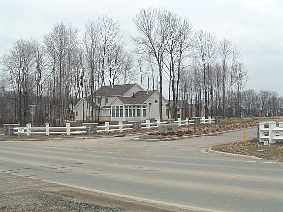 | The entrance road into the Bradford Oaks development. A former LDA model can be seen in the backround |